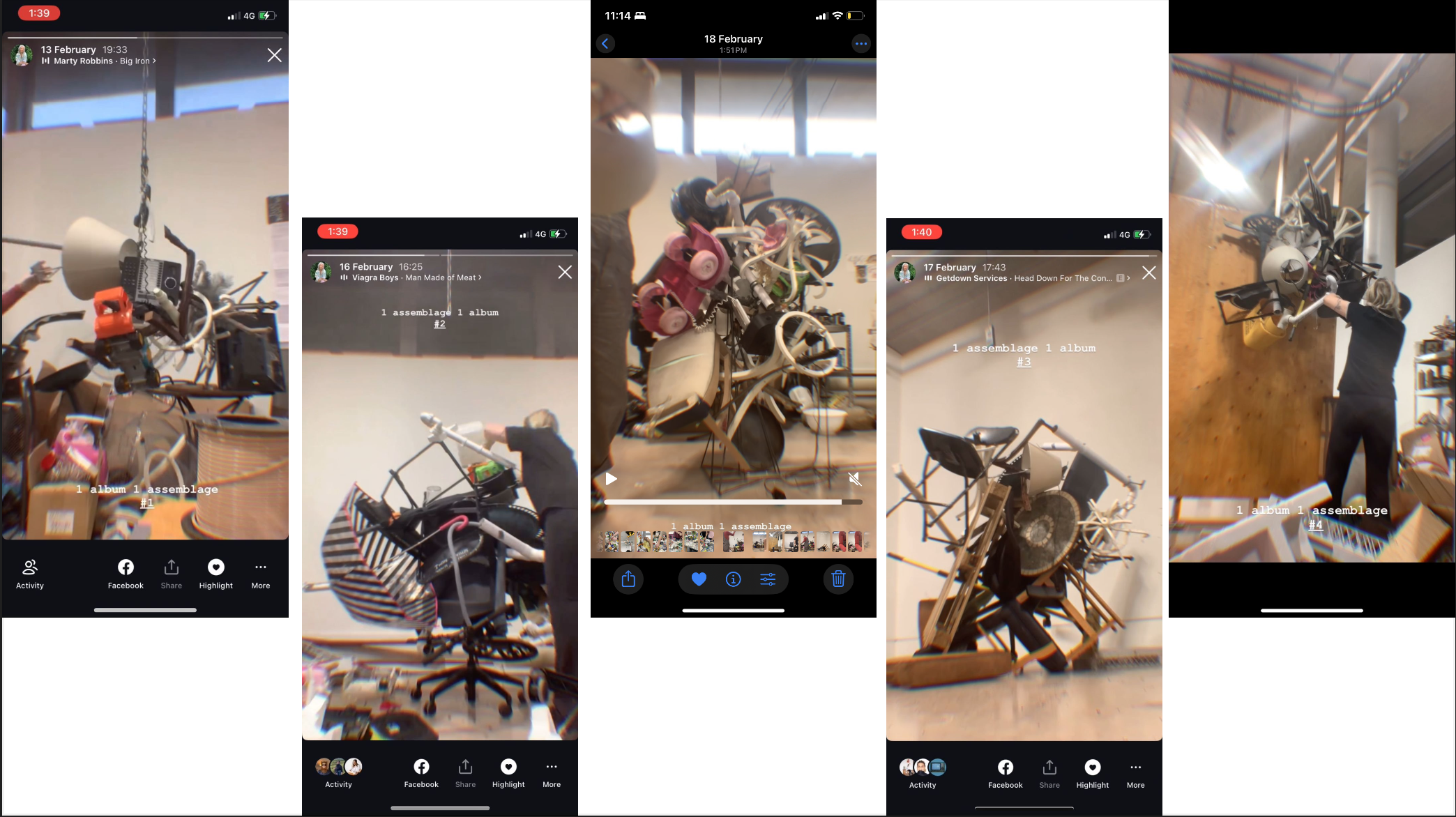 The methodology is a strict mapping of audio into three dimensional space. Each construction was built entirely within the runtime of a single album, using the record as a logistical heartbeat that dictates the pace of production. This process transforms the act of building into a high intensity labor performance, where the body is forced to keep pace with a specific window of musical time.